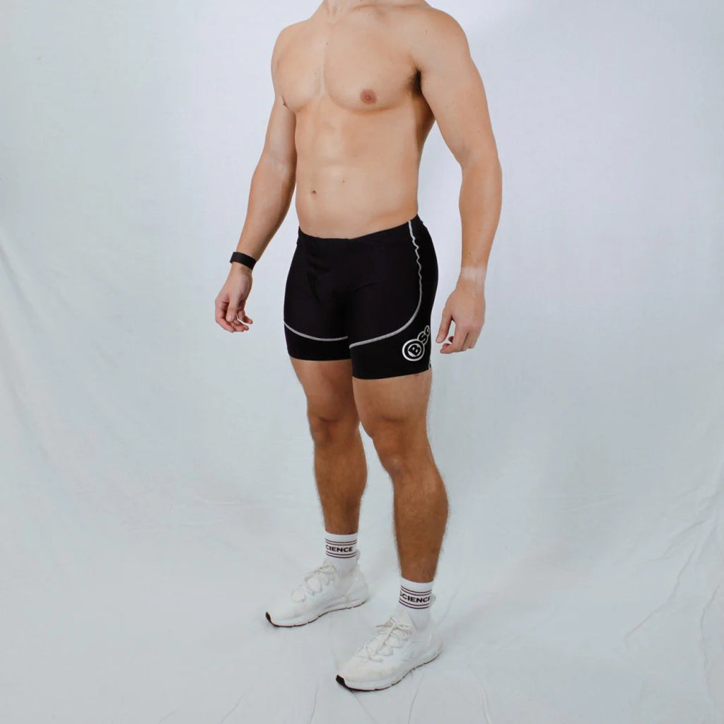 BODYSCIENCE Half Quad Shorts specified panel design forms the cornerstone of these unique garments. Specific muscle panel alignment provides unmatched strength, support and fit to targeted muscle groups. KNOWN AS “TARGETED COMPRESSION.” Take your athletic performance to the next level.